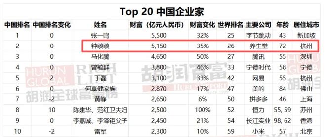 随着业务重回正轨,钟睒睒也回归低调,逐步淡出公众视野,公开发声频次少于舆论爆发当年。根据3月发布的胡润富豪榜,72岁的钟睒睒以5150亿元财富值(同比增长35%)位列中国企业家第二位。