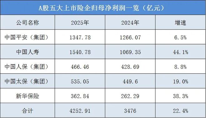 2025年,A股五大上市险企均实现了亮眼的业绩增长。