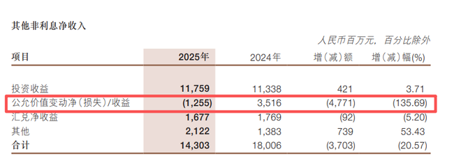 从年报中也可以看出,去年公允价值变动损益直接由盈转亏,较2024年暴跌135.69%,仅这一项就抹去了近50亿元的收入。