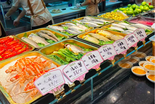 可以看出,这一模式借鉴了沿海城市海鲜排档的自选现捞做法。